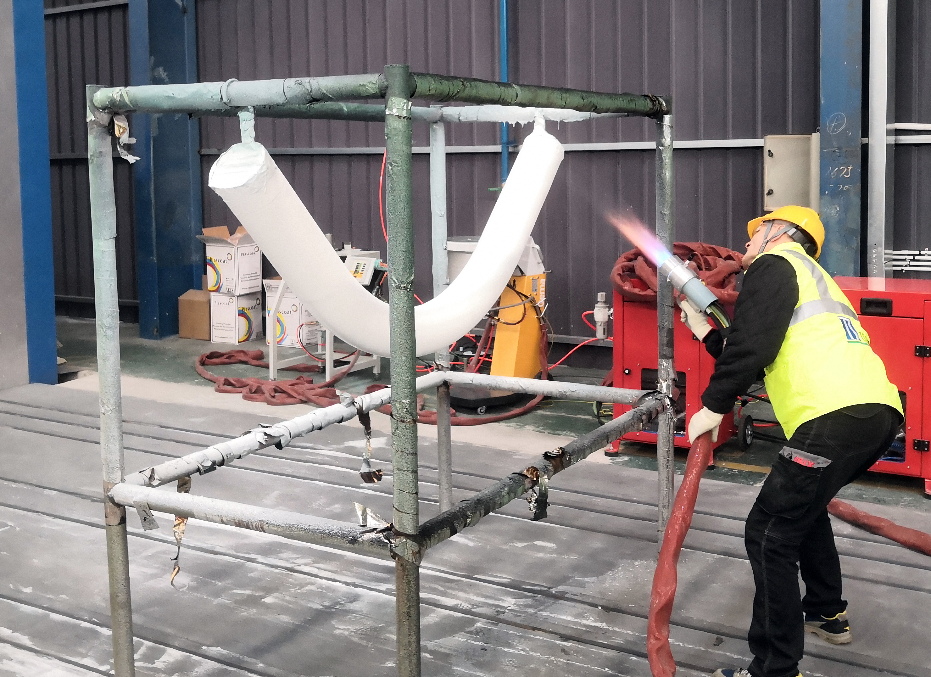 我公司Custom Coating实验工厂于2019年底从国外引进了先进的3PE/PP喷涂设备和工艺技术。喷涂设备供应商CEO和技术主管亲临现场提供技术指导和人员培训,并与我公司操作人员一道,成功对热煨弯管进行3PE/PP喷涂。